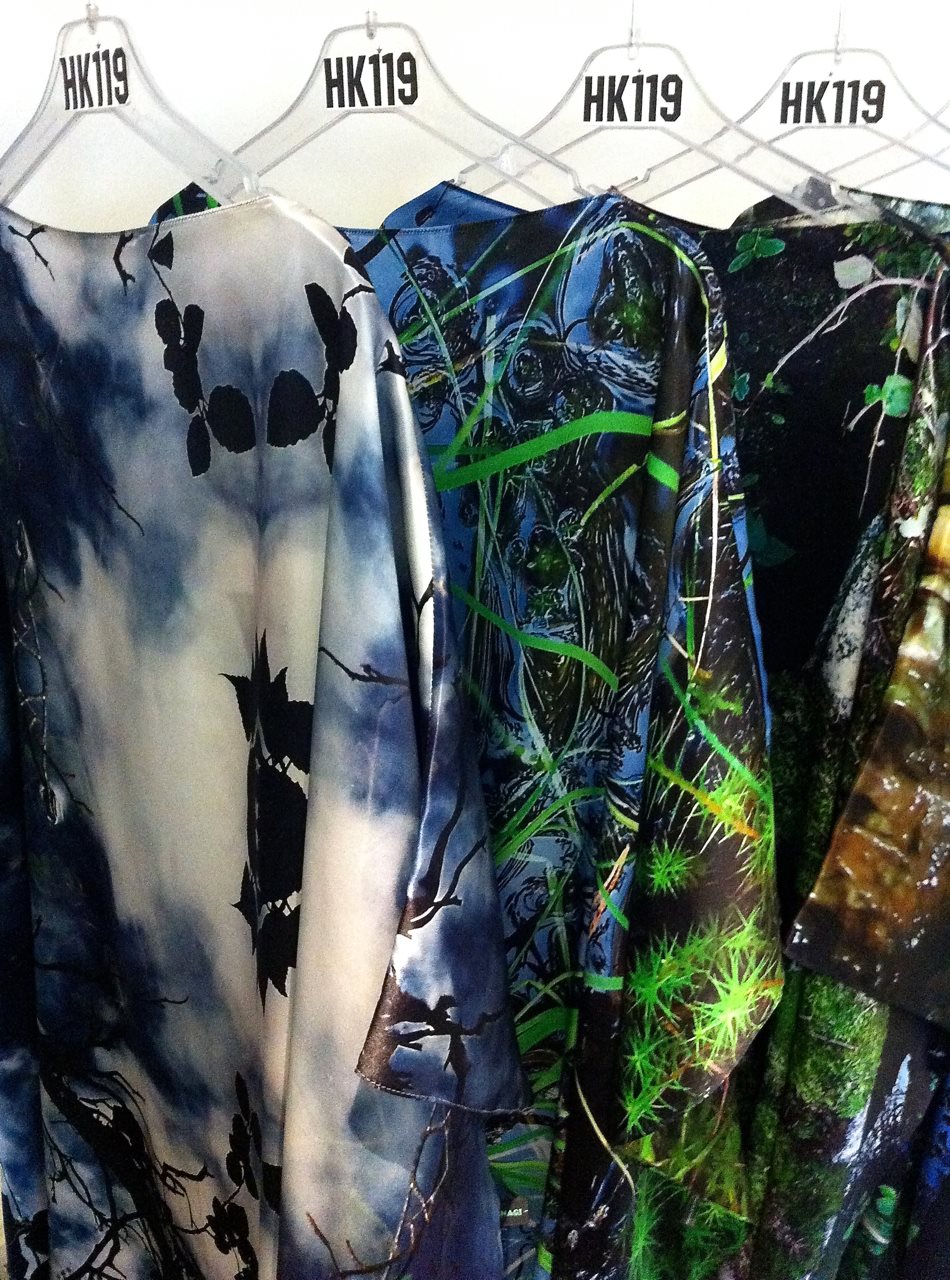 Kiehtovimmat vaatteet löysin kuitenkin täysin yllättäen (eksymällä, vahingossa!) aivan muualta, Galleria Huudosta, Jätkäsaaren L3 makasiinista. Multimediataiteilija Heidi Kilpeläisen Imagi-Nature valokuvaprinttikaftaanit ja rennot trikoovaatteet olivat viikonlopun ehdottomasti hauskin/kaunein/piristävin/makein/coolein uusi tuttavuus. Olen ostanut monet koruni ja erinäisiä asusteita museoiden pienistä myymälöistä, miksen siis ostaisi vaatteitani galleriasta?